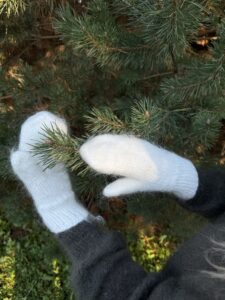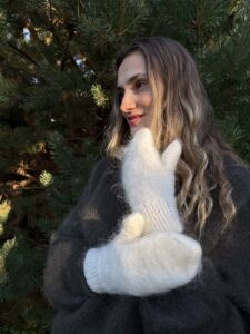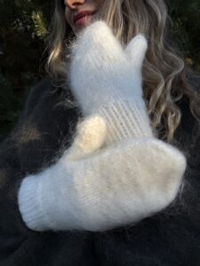 Damen-Fäustlinge aus weißer Angorawolle LUNA