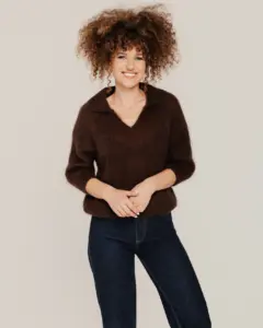 Damen-Polo-Pullover aus Mohairwolle BRAUN