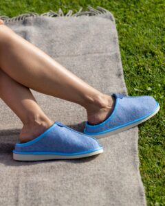 Weiche und warme Hausschuhe aus natürlichem Wollfilz – warme Schritte. Wie auf einer flauschigen Wolke gehen.