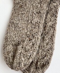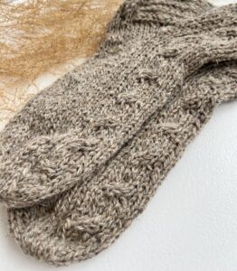 Die Socken sind aus einer Mischung aus Schaf- und Hundewolle gestrickt. Schafwolle bietet Weichheit und Wärme, Hundewolle fügt Stärke und Haltbarkeit hinzu. Diese Kombination gewährleistet hervorragende Wärmespeicherung, lässt die Füße atmen und bleibt auch bei häufigem Tragen langlebig.