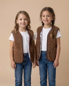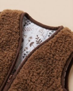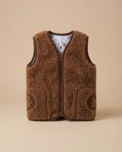 Kinderweste ULA – warm, bequem und leicht, ideal für kühlere Tage. Sie schränkt die Bewegung nicht ein, sodass das Kind sowohl drinnen als auch draußen spielen, sich bewegen und wohlfühlen kann. Aus natürlicher Kamelwolle gefertigt.