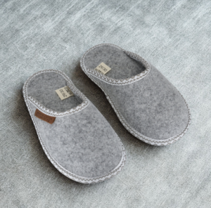 Leicht zu tragende Hausschuhe aus Naturfilz mit Gummisohle.