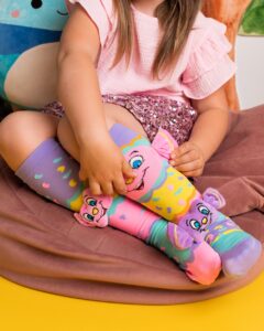 Verspieltes Design, weich und bequem – diese bunten Kindersocken mit Candy-Figur bringen Freude in jeden Tag. Knallige Farben, fröhliche Muster und eine niedliche Figur machen sie zu einem stylischen und funktionalen Accessoire.