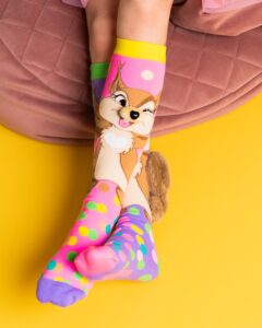 Fröhliches Design, weich und bequem – diese bunten Kindersocken mit dem HAPPY SQUIRREL Eichhörnchen bringen jeden Tag Freude. Leuchtende Farben, verspielte Muster und ein süßes Eichhörnchen machen sie zu einem stilvollen und funktionalen Accessoire.