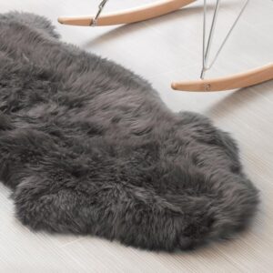 Entdecken Sie Eleganz und natürlichen Komfort mit diesem hochwertigen, 100 % natürlichen dunkelgrauen Schaffell. Es ist nicht nur ein stilvolles Wohnaccessoire, sondern auch eine praktische Wahl für den Alltag – weich, dicht, warm und atmungsaktiv.