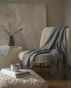Die Neuseeland-Schafwoll-Decke ist warm, weich und natürlich. Sie ist eine ideale Ergänzung für Ihren Wohnraum und sorgt für Gemütlichkeit und Komfort.