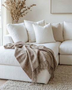 Die Neuseeland-Schafwoll-Decke ist warm, weich und natürlich. Sie ist eine ideale Ergänzung für Ihren Wohnraum und sorgt für Gemütlichkeit und Komfort.