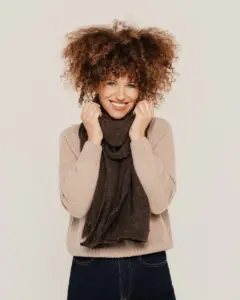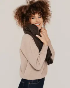 Die klassische, vielseitige Farbe passt mühelos sowohl zu Alltags- als auch zu eleganten Outfits. Der Schal kann auf verschiedene Arten getragen werden – um den Hals gewickelt oder lässig über die Schultern gelegt als stilvolles Highlight.