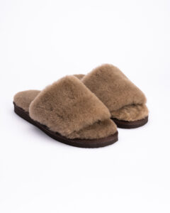 WoolLando Damen offene Hausschuhe aus Naturpelz