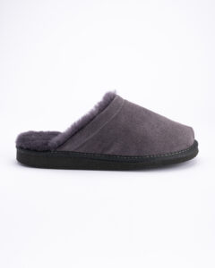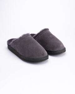 Die Innenseite der Hausschuhe ist mit Naturpelz, die Außenseite mit Veloursleder bezogen.