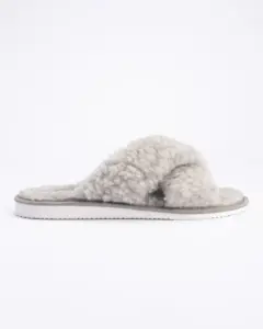 WoolLando natürliche Merinowolle graue offene Hausschuhe