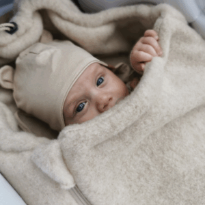 Zaffiro heller Babyschlafsack / -umschlag aus natürlicher Wolle