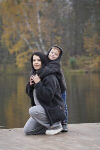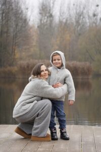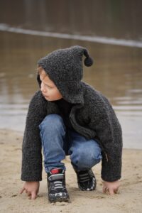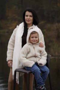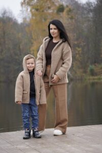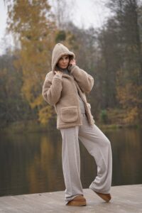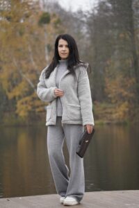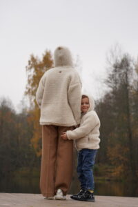 Angenehmer, warmer, flauschiger und dichter Stoff. Diese Wolle zeichnet sich durch ihre hohe Qualität, Weichheit und Elastizität aus. Schafwolle hat ein höheres Flächengewicht und bessere thermische und thermoregulierende Eigenschaften. Diese Wolle hat eine hohe Luftdurchlässigkeit, was den Feuchtigkeitstransport und die Atmungsaktivität verbessert. Natürliche Rohstoffe und eine geeignete Stricktechnik sorgen dafür, dass sich Staub und Schweiß nicht in den Wollprodukten ansammeln, wodurch die Bedingungen für die Entwicklung von Milben beseitigt werden. Hält die Körpertemperatur konstant und reizt die Haut nicht (antiallergisch).